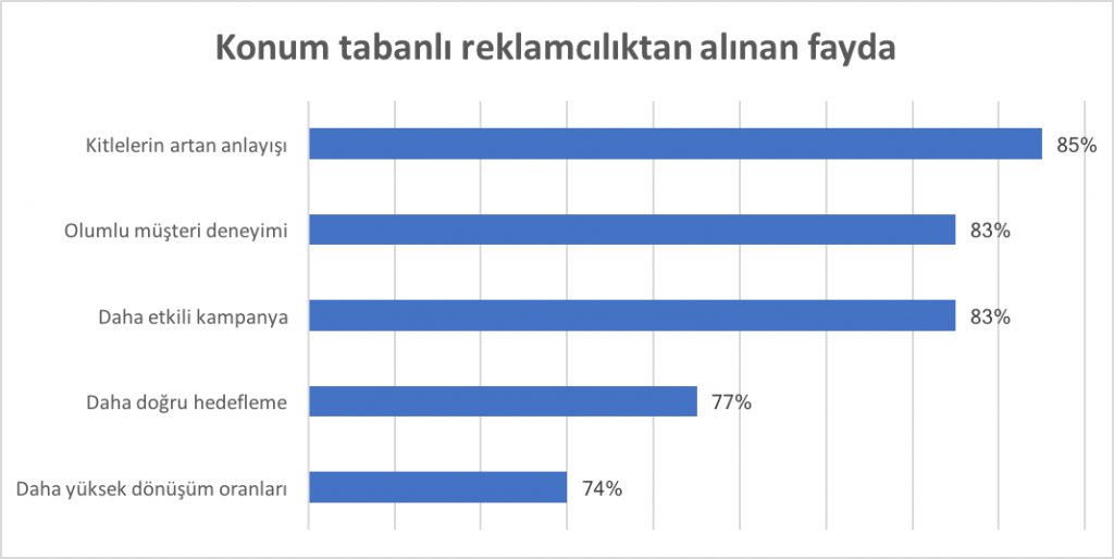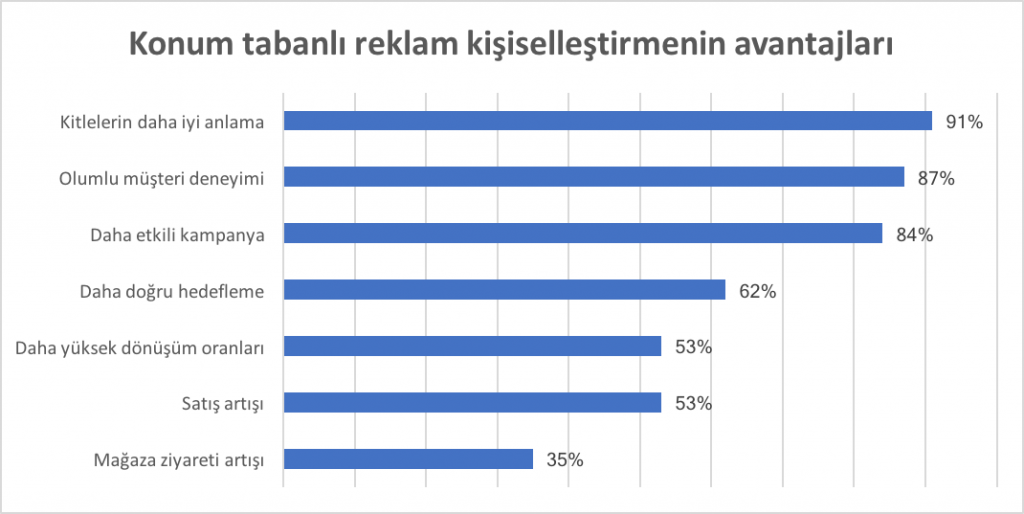 Lokasyon Bazlı Hedefleme ise bahse konu Kişiselleştirme amaçları için ciddi dönüşler sağlıyor. Deneklerin %53’ü bu teknoloji sayesinde daha yüksek “Conversion” elde ettiklerini söylüyor.